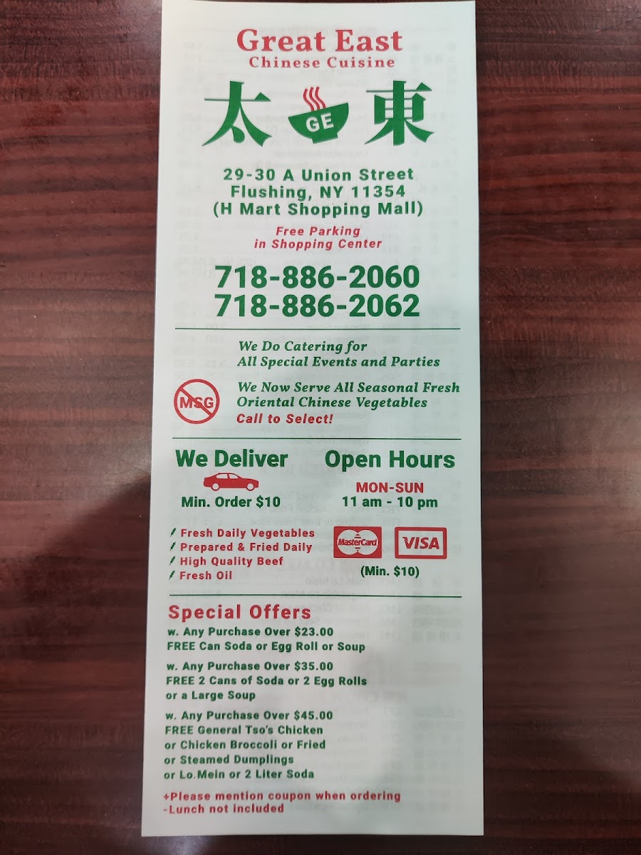 Welcome to Great East, your ultimate destination for authentic Chinese fast food nestled in the heart of Flushing, NY. With a focus on quality and flavor, this local gem excels in delivering delicious meals in a clean and inviting environment. Great East has carved a niche for itself, offering a diverse menu that ranges from Szechuan beef to shrimp fried rice, ensuring a delightful culinary experience for everyone.